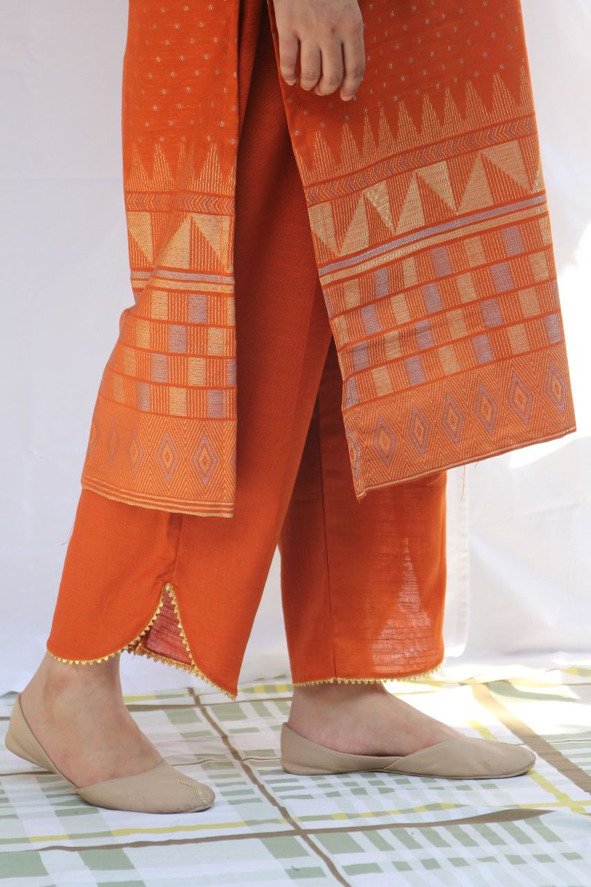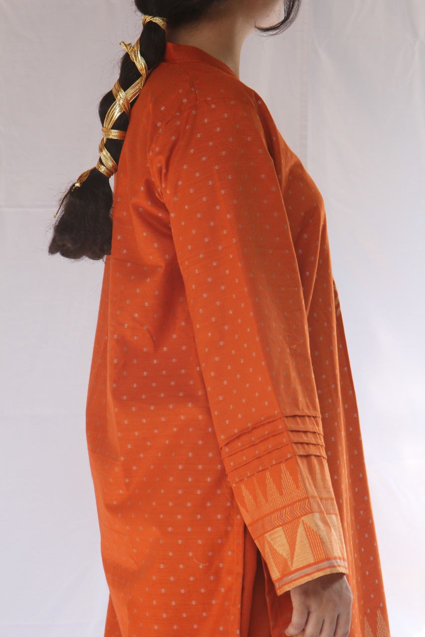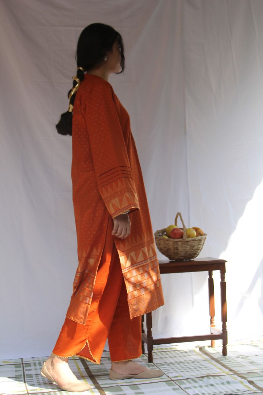 This 2-piece jacquard Khadder set features a long shirt paired with straight trouser, ideal for comfortable yet stylish winter wear. The shirt showcases elegant jacquard printing, enhanced by minimal tussles at the neck for a refined detail. Perfect for casual occasions, this ensemble combines warmth with sophistication, ensuring a chic and effortless look throughout the season.